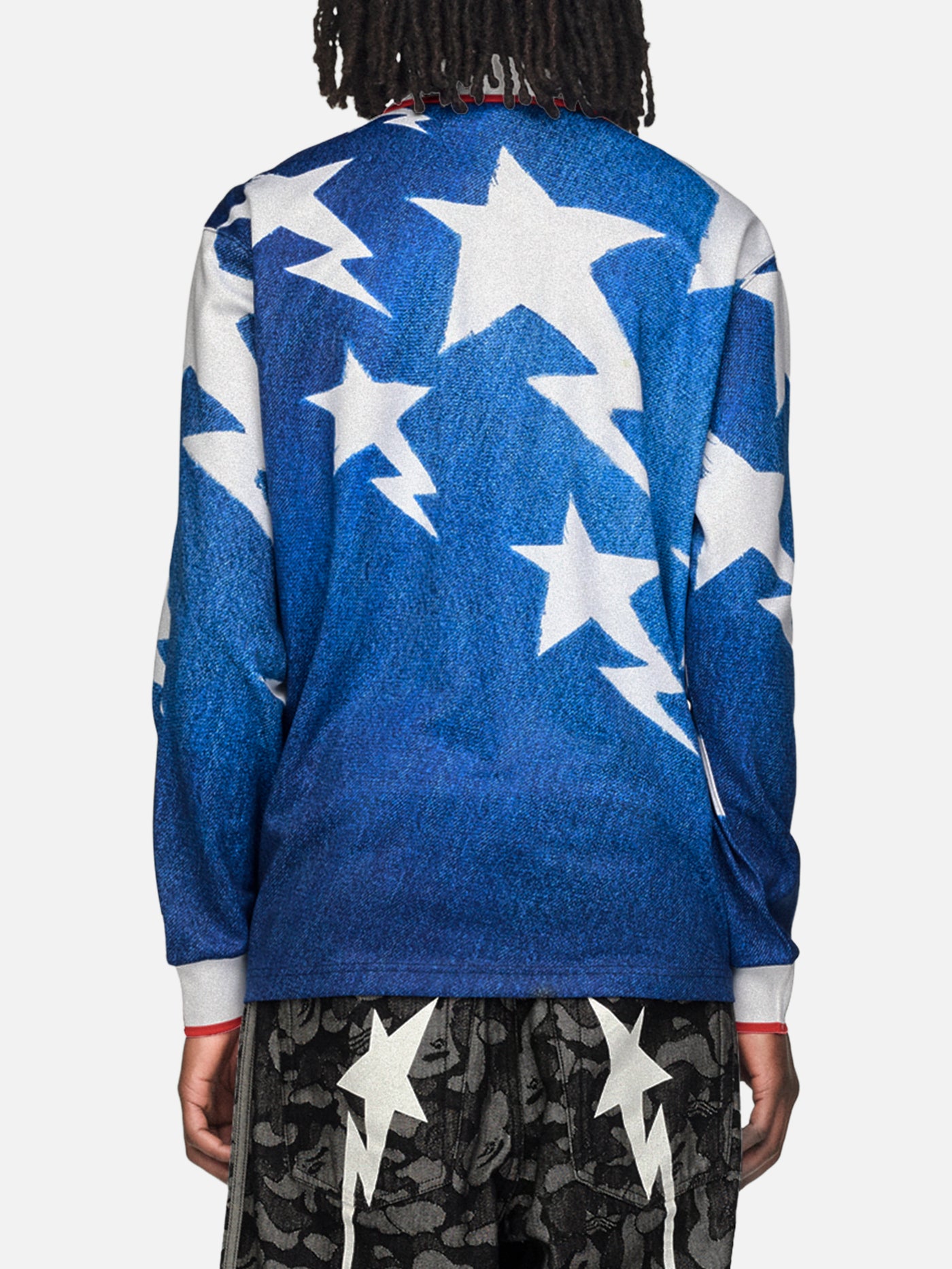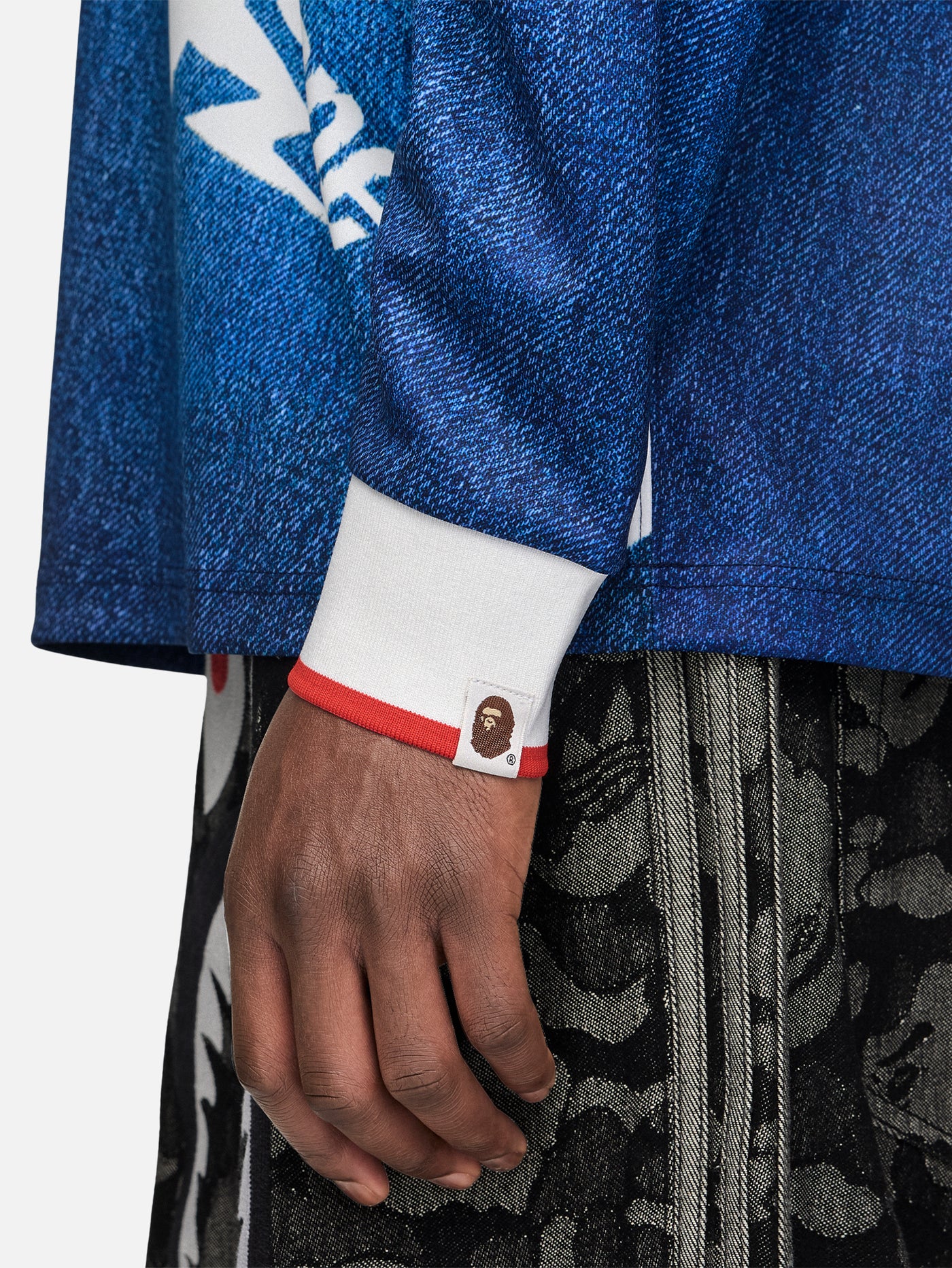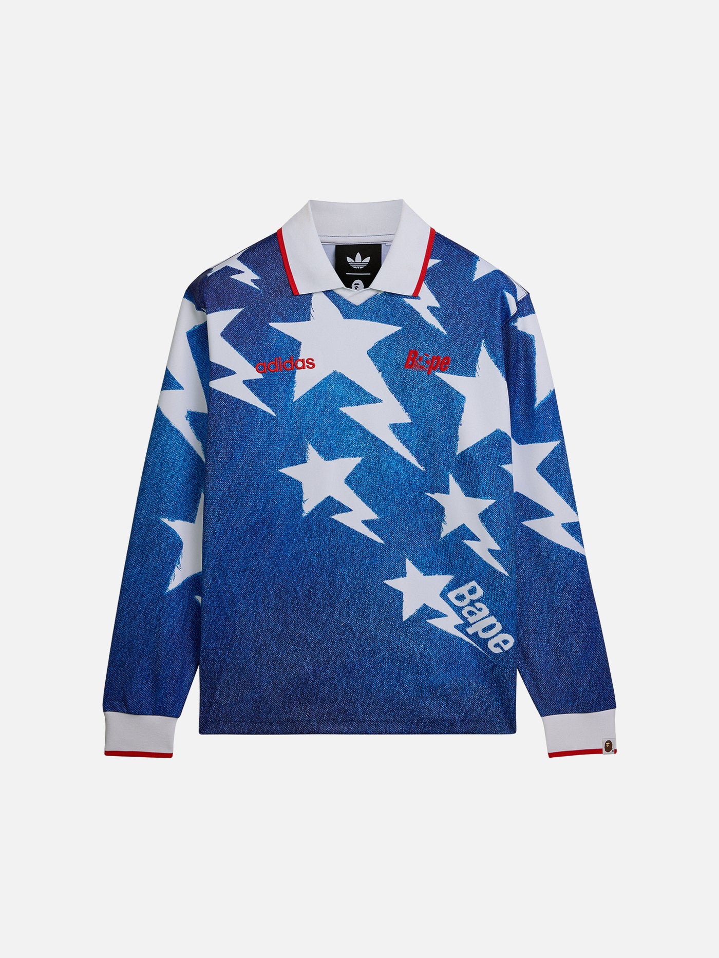 The adidas x BAPE LSL Star Jersey 'Medium Blue Denim' features a relaxed fit that allows for freedom of movement, while its knit fabric construction provides a soft feel against the skin, making it ideal for everyday wear. The classic collar detail complements the comfortable silhouette with balanced sophistication. It pairs effortlessly with your favorite denim or sweatpants, showcasing a bold, unique style that embodies the adidas Originals spirit.