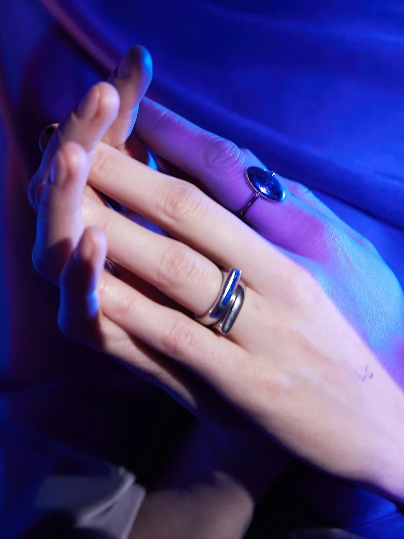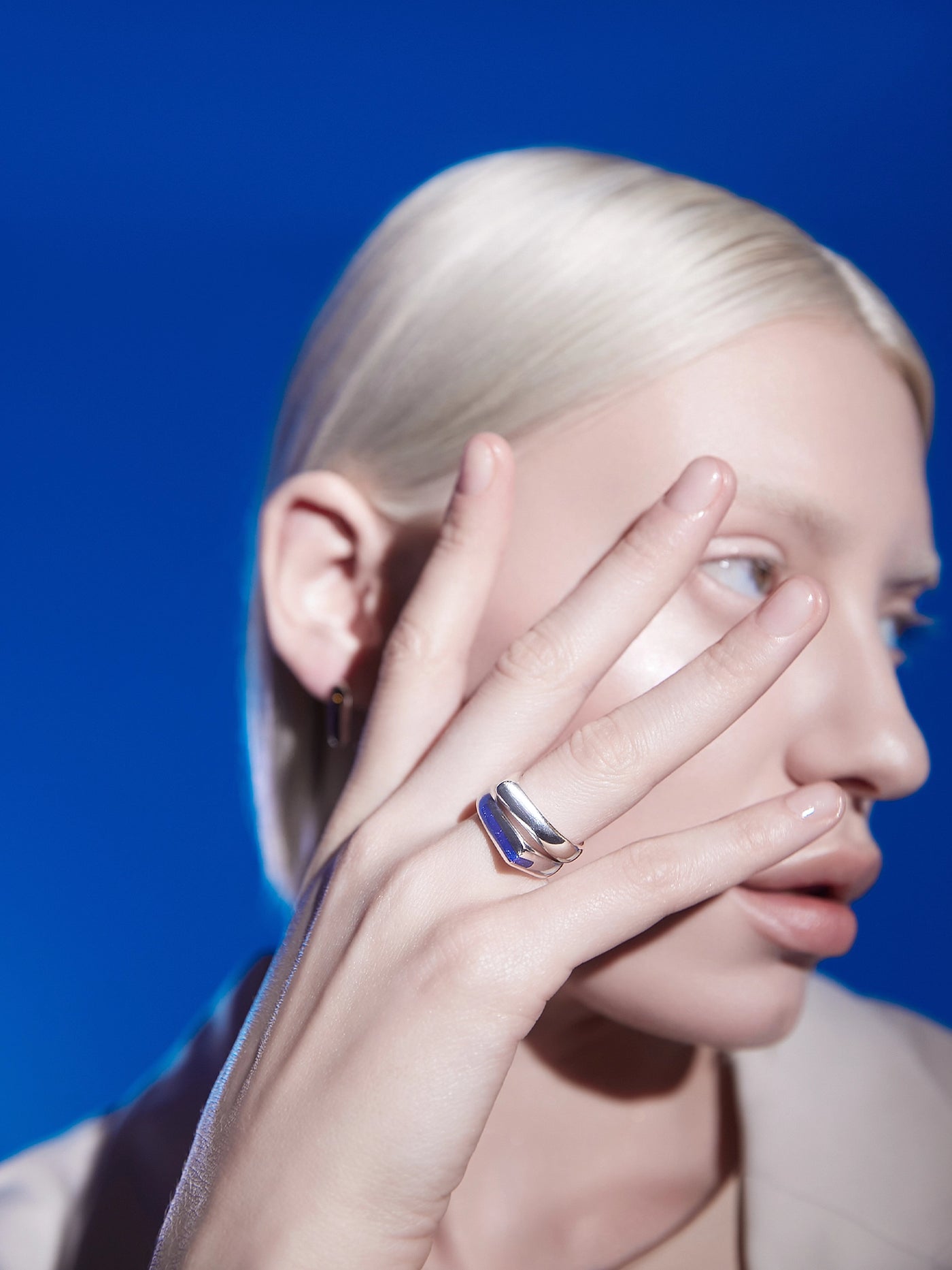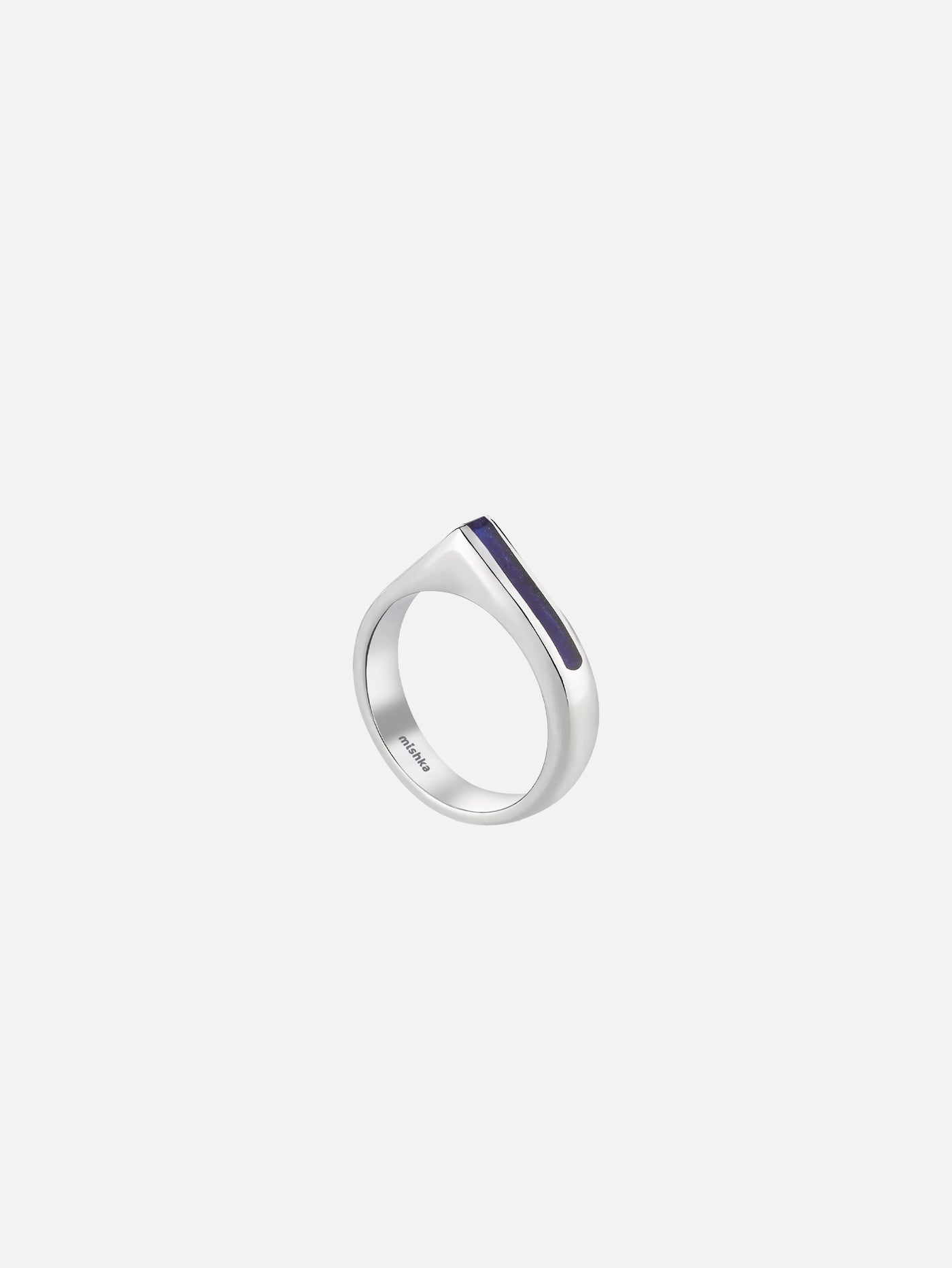 Blue enamel detailed, minimalist angular ring with soft lines.