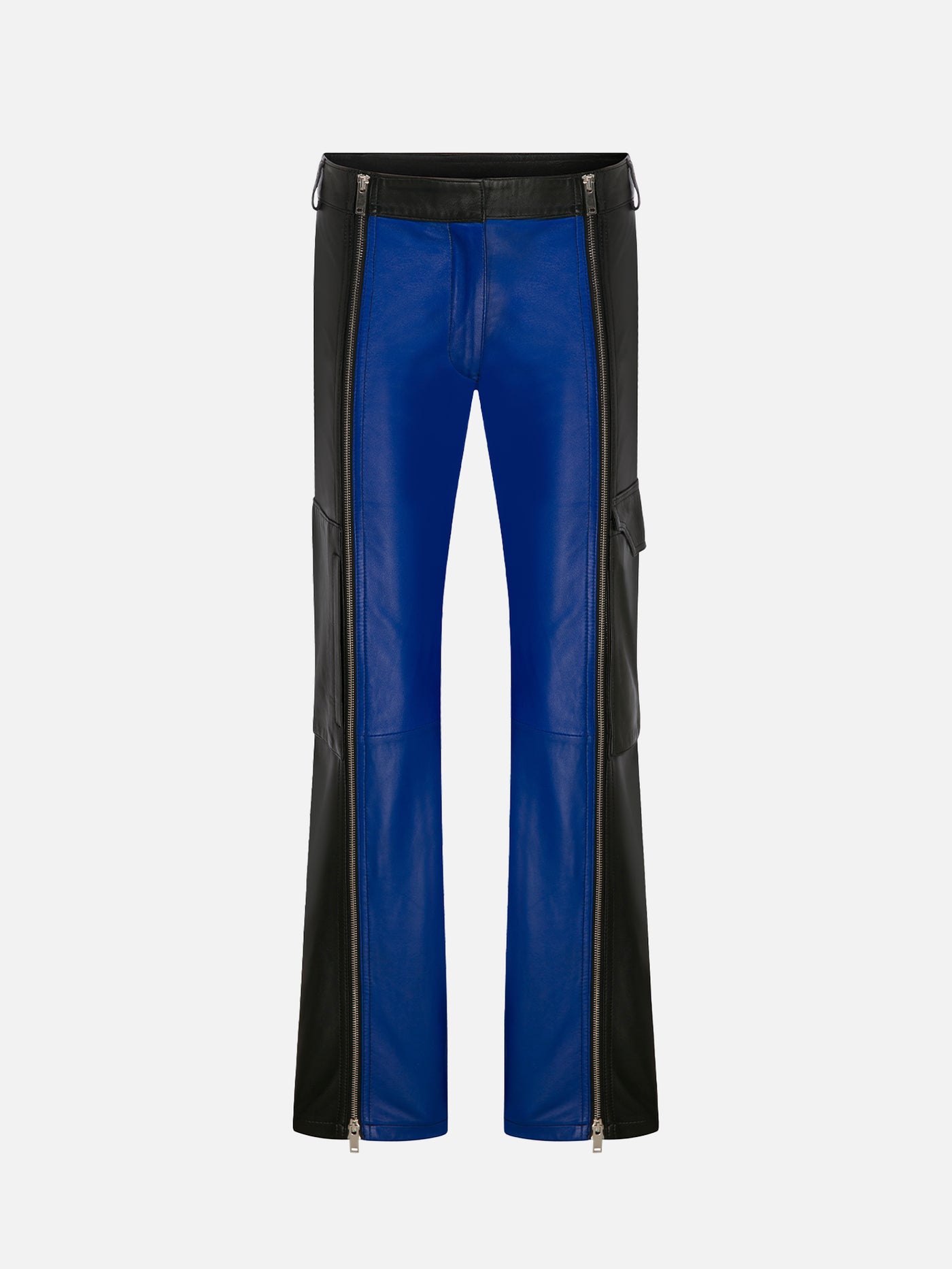 Fermuarlı Deri Pantolon - Siyah/Mavi
