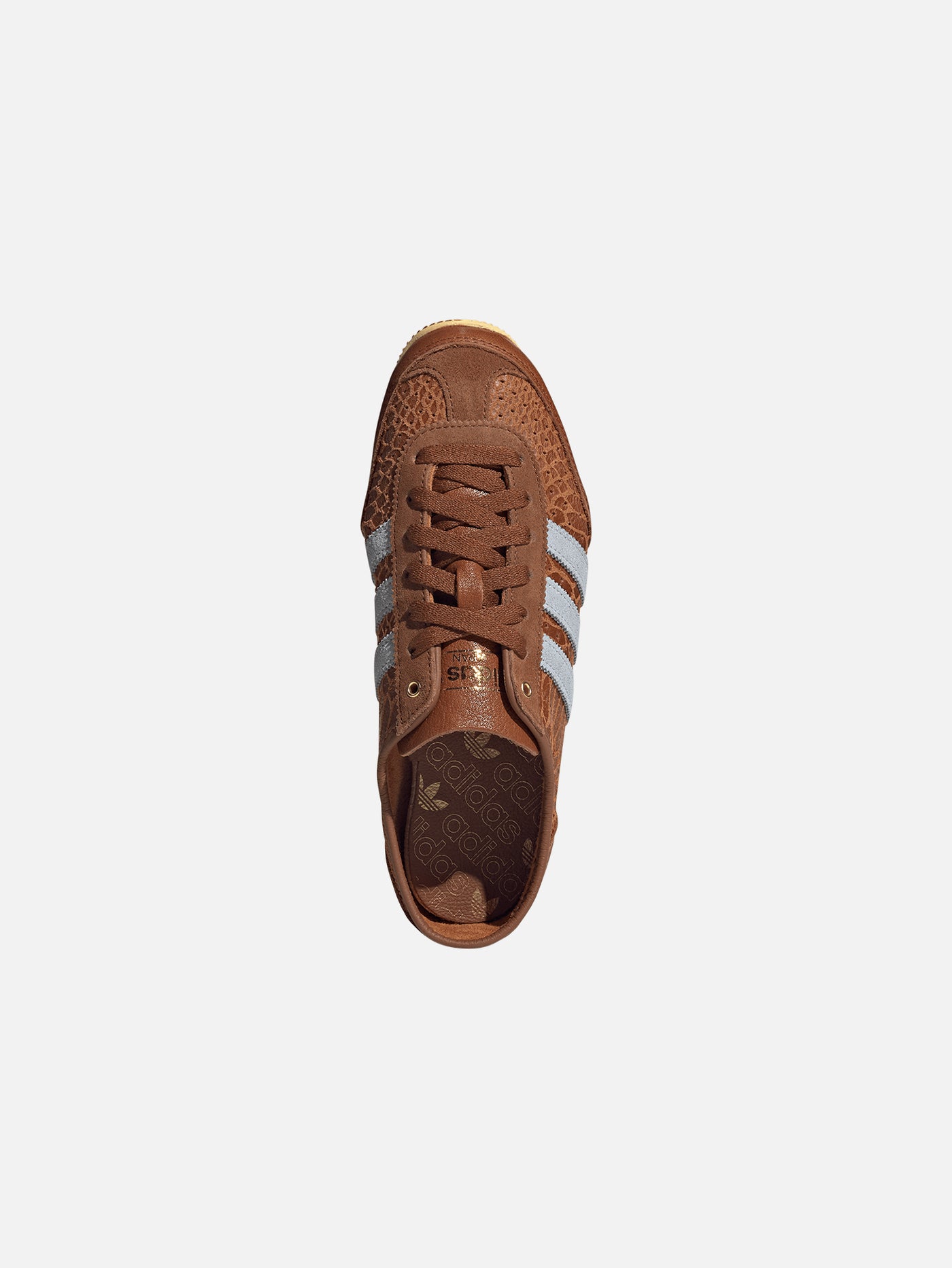 Özel tasarım yorumu olan bu model, tek katmanlı deri üst yüzey, katlanmış kenarlı bağcık kapsülü ve alçaltılmış yapısıyla öne çıkıyor. İncelikli delikler ve T burun kısmındaki yeni görsel, Grace'in detaylara verdiği önemi yansıtıyor. Tırtıklı 3 bant ve adidas Japan dil logosu bu ikonik görünümü tamamlıyor.