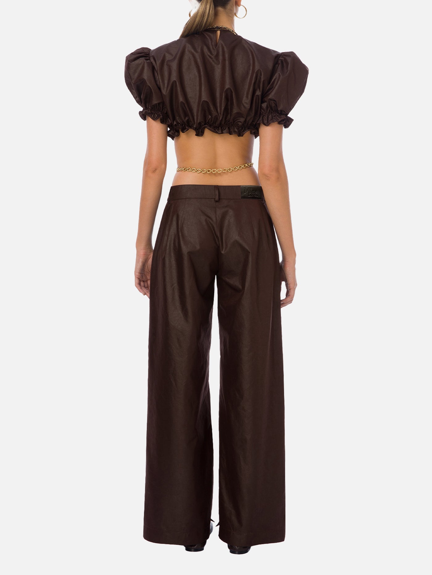 Mimi Crop Bluz, kahverengi hafif parlak kumaşıyla modern ve iddialı bir duruş sergiler. Kısa kollu tasarımı, balon kol detayı ve beli lastikli büzgü formu ile feminen bir siluet oluşturur. Deri görünümünü andıran dokusu, hem şık hem de cesur kombinlerin vazgeçilmezi olur. Mi Magic Love ile güçlü tarzınızı ön plana çıkarın.