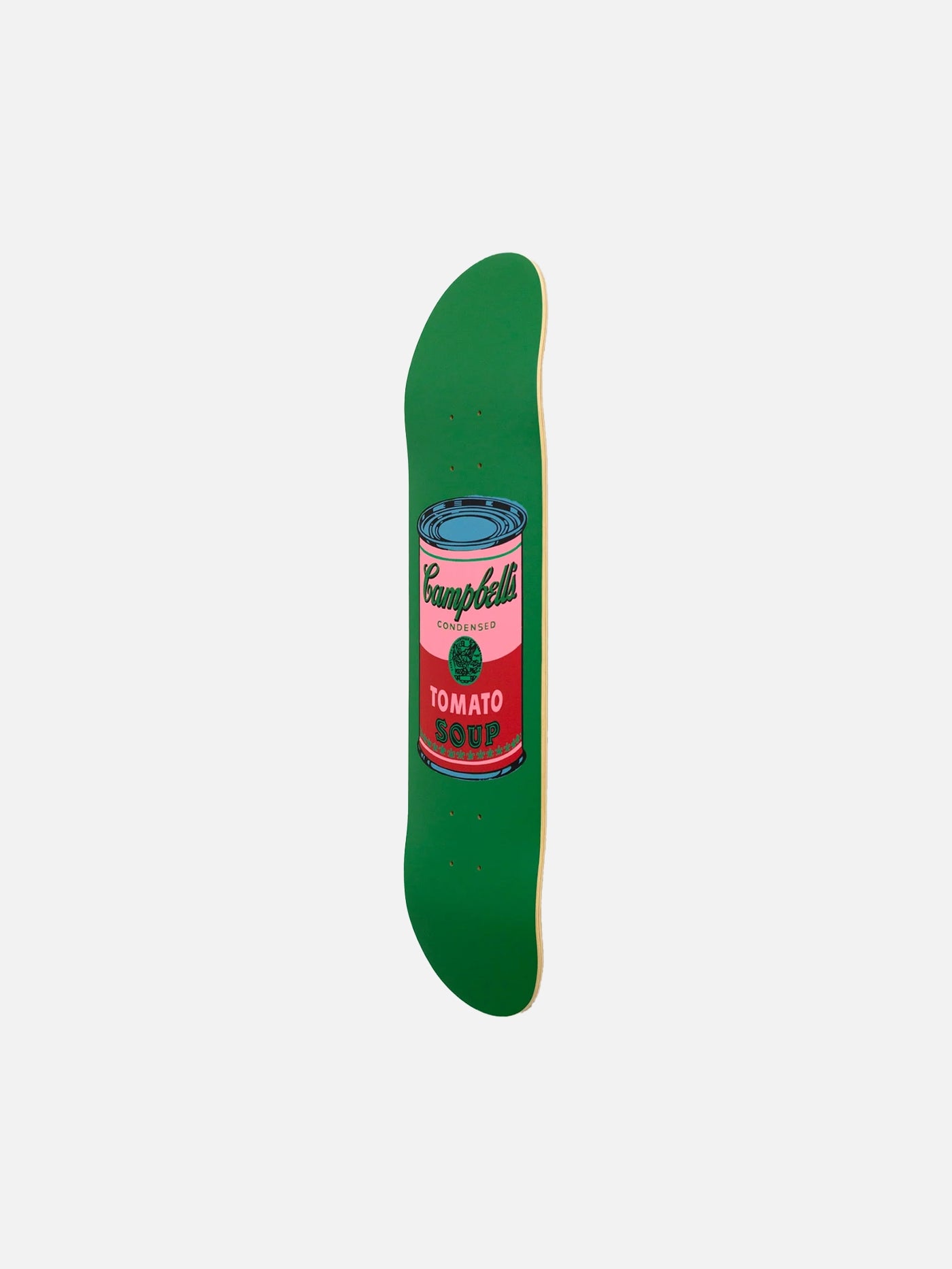 Warhol’un ünlü Colored Campbell’s Soup Can serisinden “Blood” versiyonu, klasik kırmızı‑beyaz konserveden ayrılarak koyu kırmızı/mor tonuyla çarpıcı bir görsel sunuyor. 1960’ların pop art mirasını modern bir görselle buluşturan bu solo deck, hem çağdaş sanat tutkunlarına hem kaykaycıya güçlü bir ifade fırsatı sunuyor.