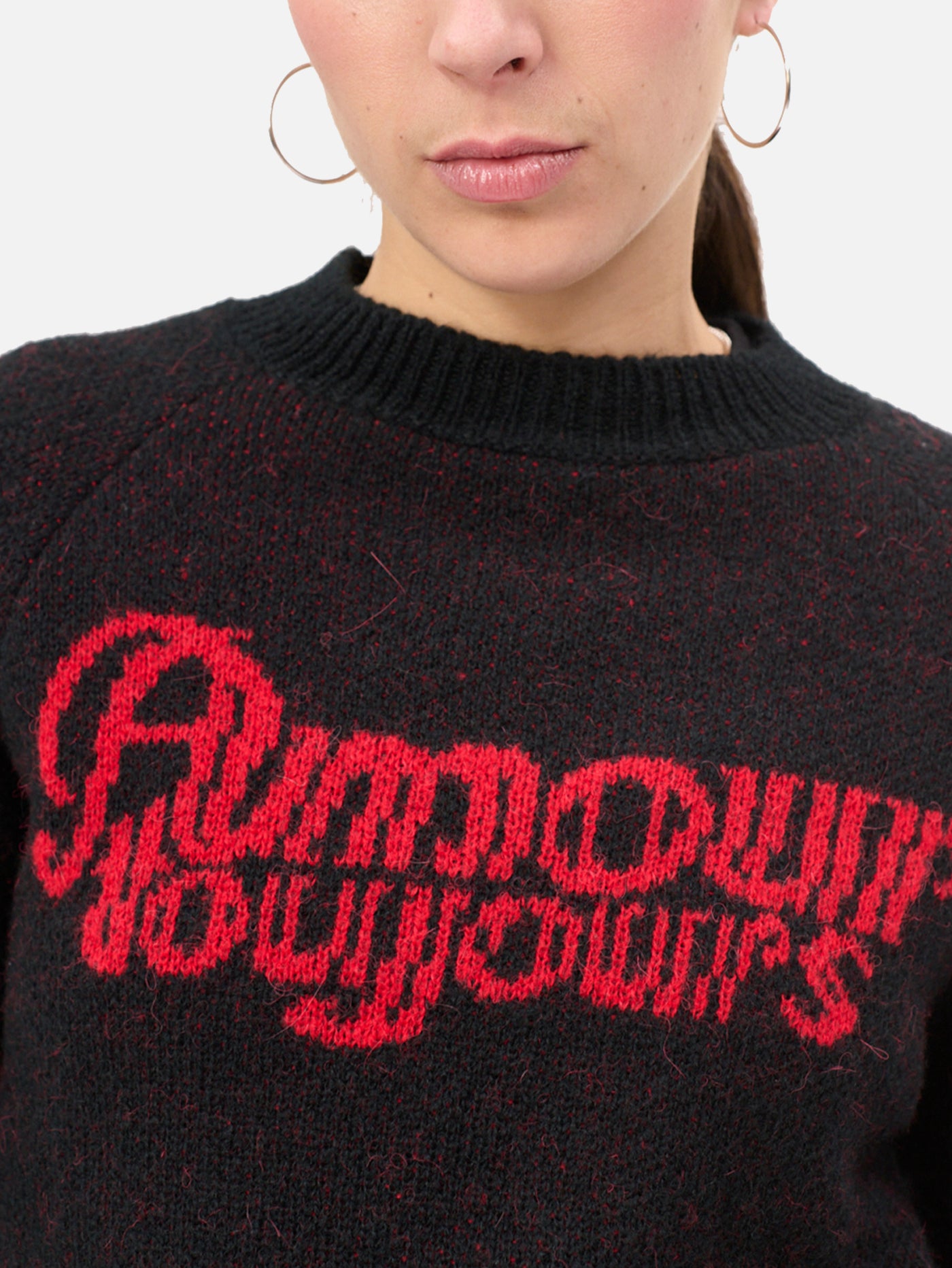Önü jakarlı desenli örme kazak.