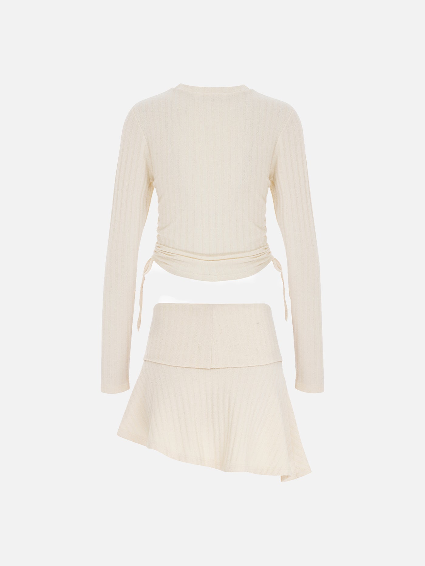 Marlene Takım, krem rengi fitilli kumaşıyla zarafeti minimal bir çizgide buluşturur. Asimetrik etek kesimi ve beldeki katlama detayı modern bir siluet yaratırken, uzun kollu bisiklet yaka üst konforlu bir görünüm sunar. Yanlardaki bağcık ve büzgü detayları ise feminen bir dokunuş katar. Mi Magic Love ile sade şıklığın gücünü hissedin.