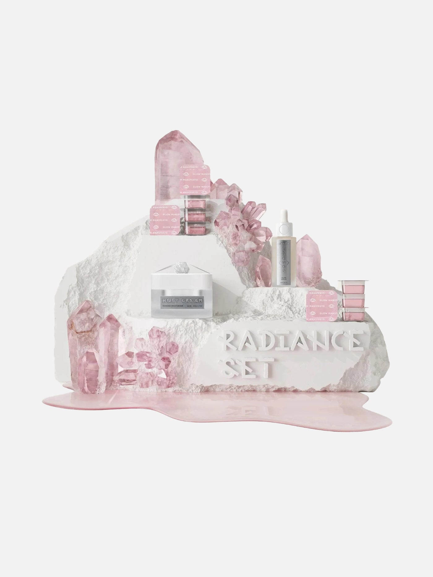 İçindekiler: GLOW MANIFESTO ICE CUBES, AURORA GLOW SERUM, HOLY CREAM DIAMOND MOISTURIZER