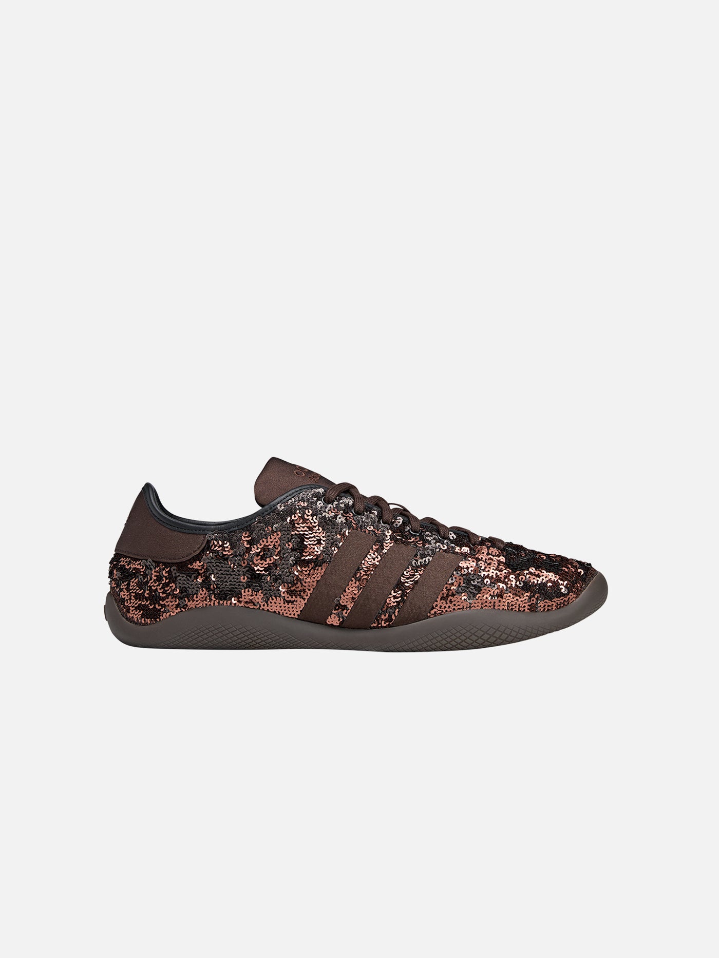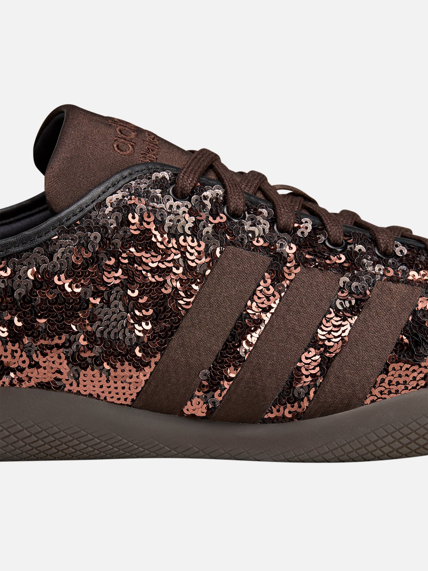 Üst yüzeyde kullanılan parıltılı payet detaylar, ayakkabıya zarif ve dikkat çekici bir ifade kazandırırken; yan panellerde yer alan saten 3 bant, Wales Bonner estetiğinin rafine dokunuşunu vurgular. Tekstil astar ve dengeli kalıp yapısı, gün boyu konfor sunar.