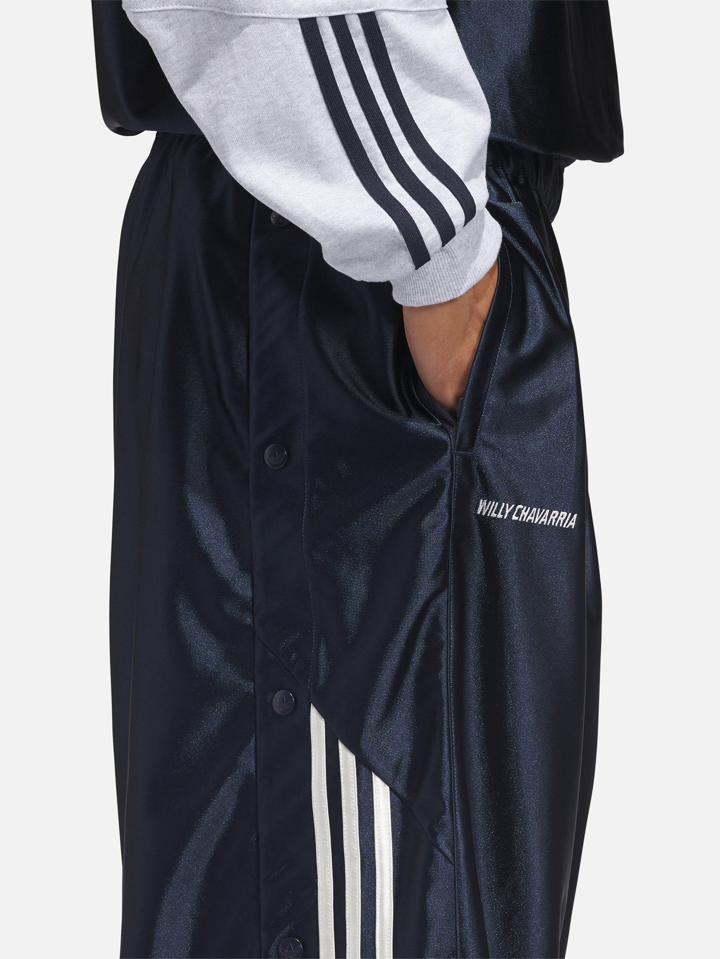 Chavarria Dazzle Snap Şort, olağanüstü konfor sağlayan parlak dazzle kumaştan yapılmıştır. Şort, bacak kısımlarında hacimli bir tasarıma sahiptir. İşlevsel detaylar arasında elastik bağcıklı bel bandı, fermuarlı iki yan cep ve her iki bacağın yanlarında çıtçıtlı kapatma bulunur. Marka, sol bacağın giyen tarafındaki çift Trefoil logosu ve sağ bacağın giyen tarafındaki Willy Chavarria yazısı ile sembolize edilir. Her iki bacağın yan tarafına 3 bant adidas logosu uygulanmıştır.